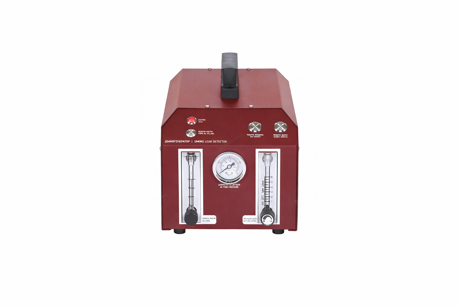 The device heats smoke fluid into a gaseous state, after which a built-in pump compresses the white smoke and delivers it under pressure (1.6–3 bar) into a sealed system.